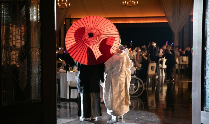 あくまでも裏テーマなので表には出していませんが、披露宴入場では映画『バーレスク』の曲を使い、スポットライトをぐるぐると回す演出をしました。