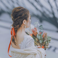 また、後ろ姿が綺麗に見えるようにルーズな三つ編みのシニヨンにしてもらいました。