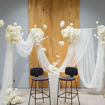 テーマカラーに合わせて、ウェディングドレス・フラワー・結婚証明書など、全てを "White" でセレクトしました。