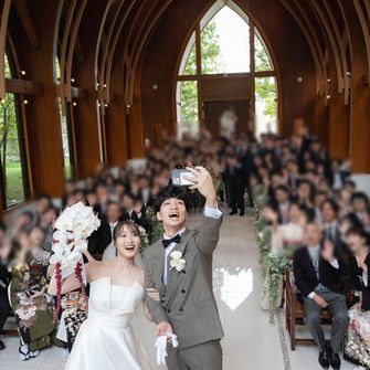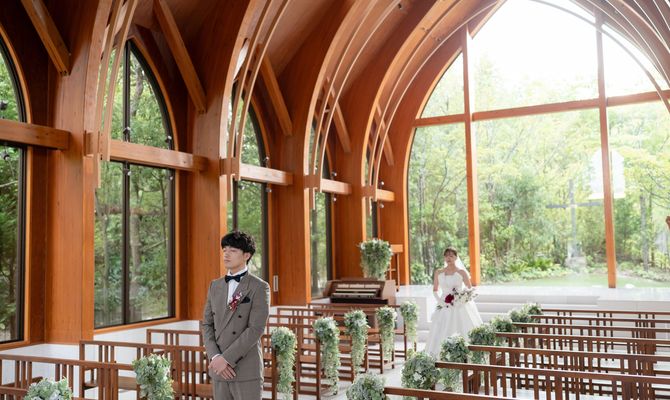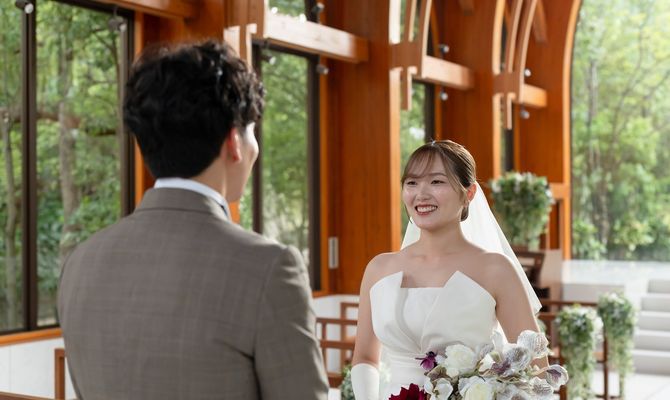 ララシャンス 博多の森を選んだ決め手は、木のチャペルです。ドアが開いた瞬間から木の香りがして、天井が高いので開放的でしたし、見た目も可愛くて好みでした。