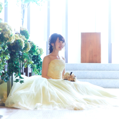 ウエディングドレスには大好きなかすみ草のドライフラワー、カラードレスにはドレスの色に合わせたドライフラワーを選びました。