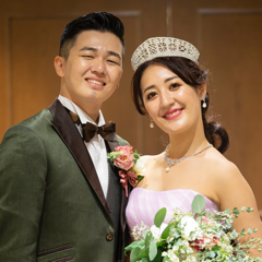 ・挙式では、メーガン妃がつけたティアラと同じようなデザインの、ティアラを見つけてロイヤルウェディングを意識しました。ピアスも、パールタイプのシンプルなピアスです。