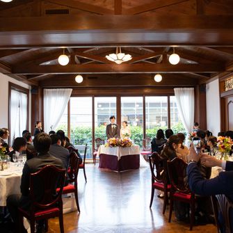 特定のテーマは決めていませんでしたが、THE結婚式のような盛大な結婚式は私たちの性格に合わないと感じていました。そこで、ゲストとゆっくり話せて、日頃の感謝を伝えられる場にしたいと考えました。「大好きな方々とのホームパーティー」というイメージを持って式場探しをしました!挙式はクラシカルな雰囲気の教会で、披露宴はシックな邸宅のような雰囲気が気に入り、南青山ル・アンジェ教会に決定しました!