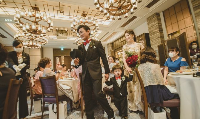 私たちの結婚式はコロナの影響で2度延期を繰り返し、当初の予定から一年経ってやっと実現しました。コロナ渦での結婚式だったので、ゲストとの距離間にとても気を遣いました。実際には近づけなくても、ゲストと一体感のある演出で、実際の距離以上に心の距離を近く感じられるように心がけました。