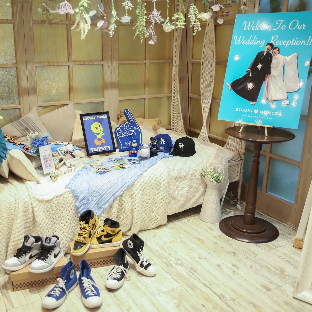 ウェルカムスペースから披露宴会場まで、手作りアイテムや2人の好きなものを取り入れ、どこを見ても私たちらしさを感じてもらえるように意識しています。