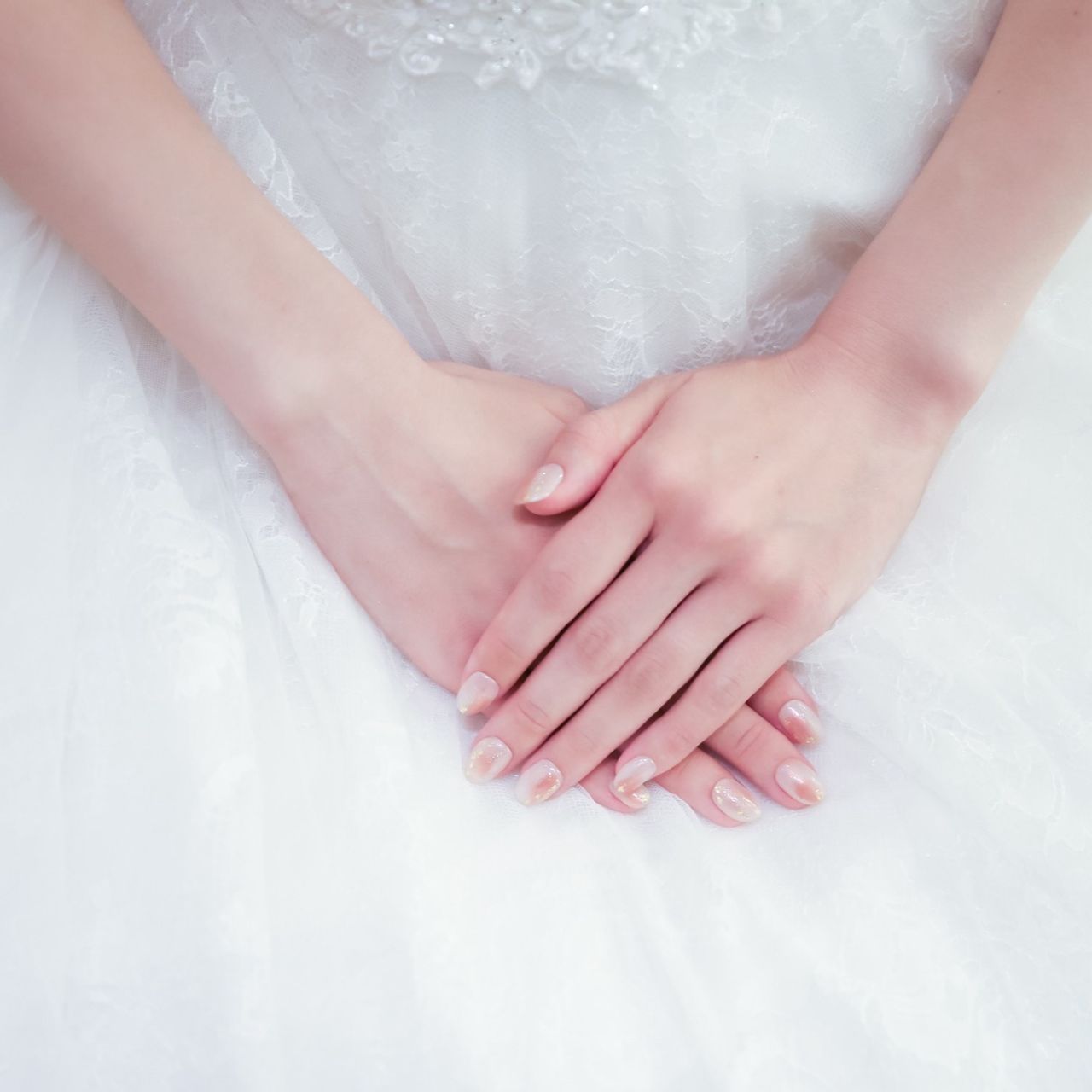 乳白色をベースに薄いピンクを乗せて、先端にさりげなくゴールドを入れた上品でやわらかなデザインにしました。