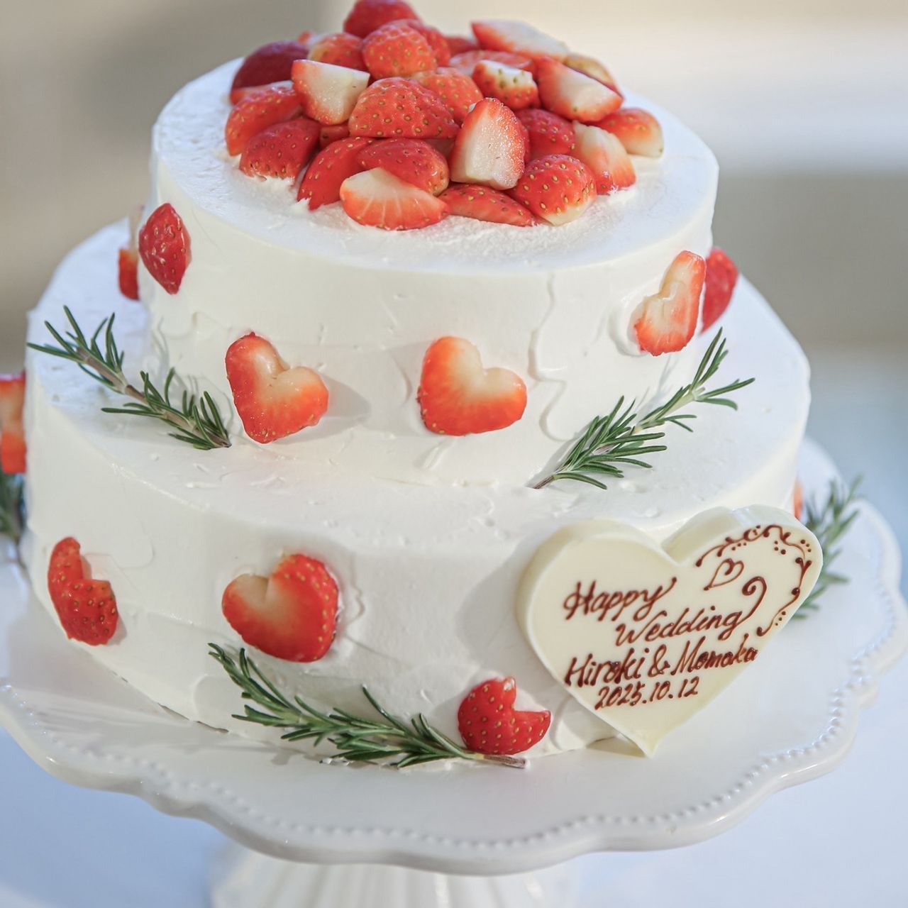 シンプルな2段のショートケーキをベースに、ハート型にしたいちごを飾って可愛らしい雰囲気にしました。