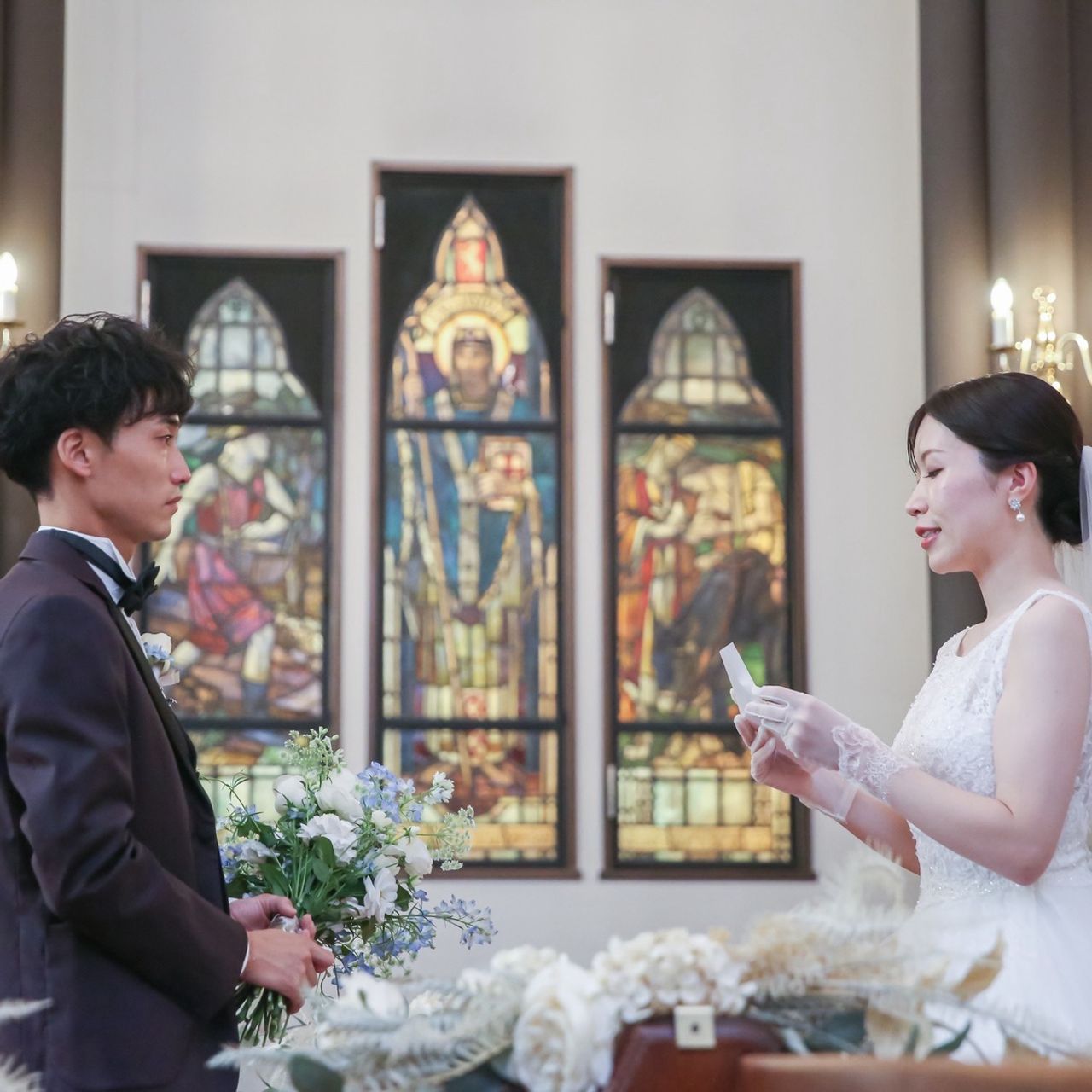 大聖堂の温かみのある空間、色鮮やかなステンドグラス、光が差し込むバージンロードに一瞬で惹かれました。