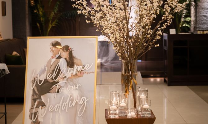 テーマは「車とお花」裏テーマは「春を告げる」です。長良川清流ホテルを選んだ決め手は、岐阜ならではの景色が見えることです。チャペルからも披露宴会場からも、川や山が見える景観がとても理想的でした。そして、サプライズ花火を打ち上げられることも決め手の一つです。