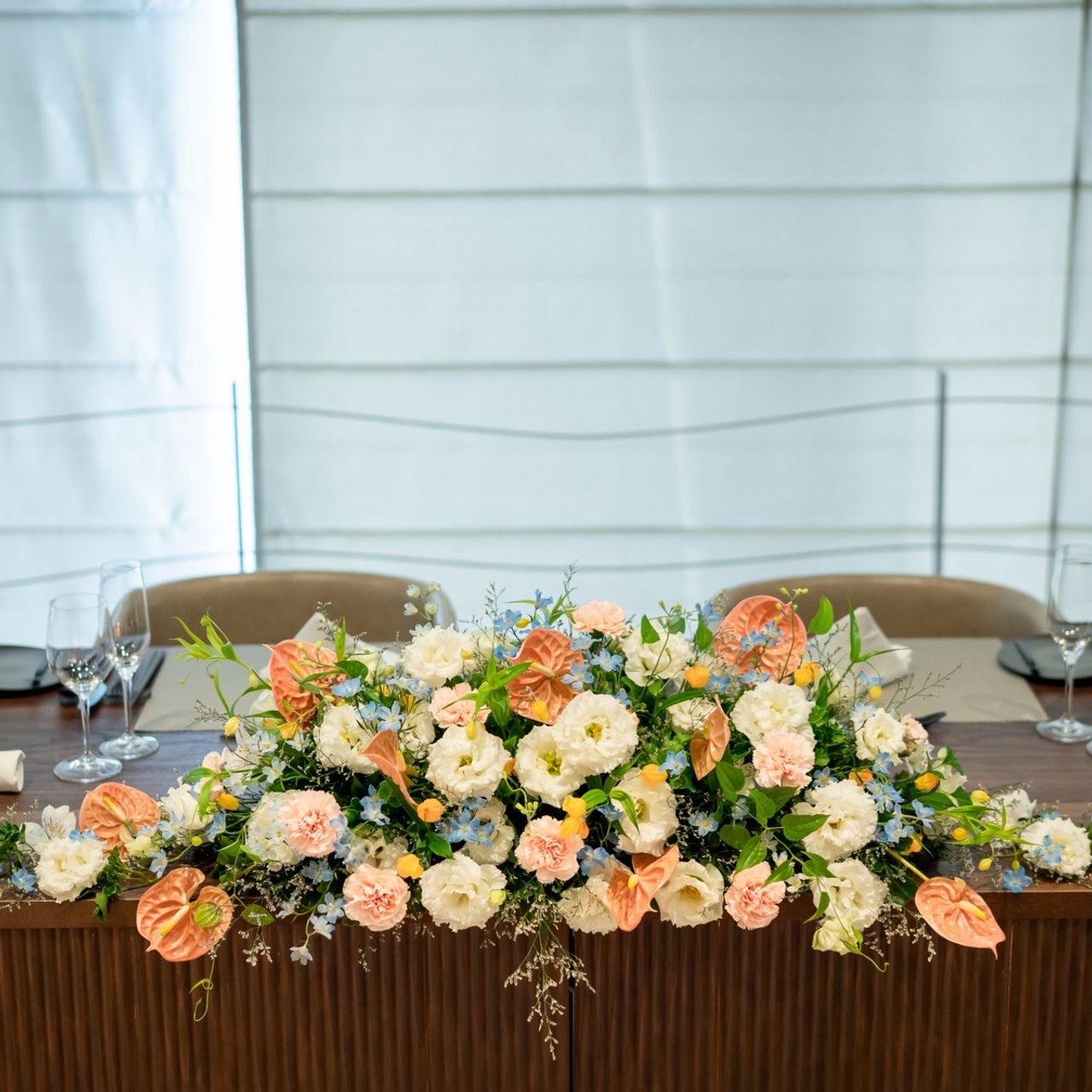 お花は完全にお任せでお願いしました。実は百合をどうしても使いたかったのですが、料金の関係で似たお花に変更してもらいました。