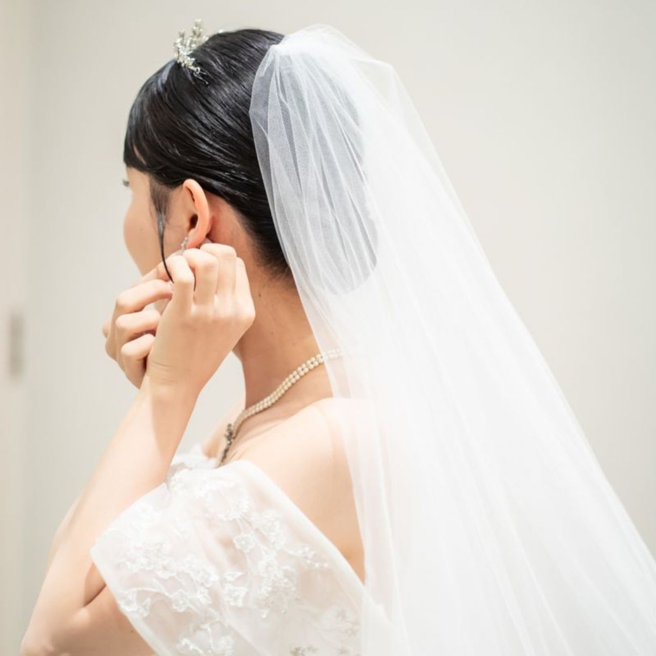 ウェディングドレスの時は、少し高さのあるティアラをつけました。