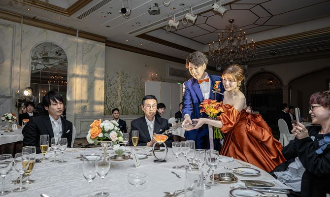 そのため、余興は行わず、お色直しの際には各テーブルに置いたジュエルリングに光の液体を注ぐ演出で、ゲストのもとを回る時間を設け、とても幸せな時間を過ごせました。