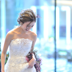 カラードレスを着ずウェディングドレス1着に決めたので挙式と披露宴でガラッと雰囲気を変えるヘアメイクにしました。