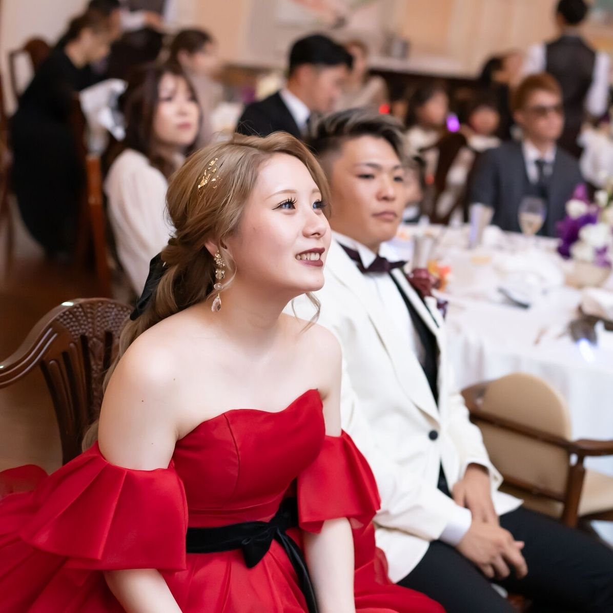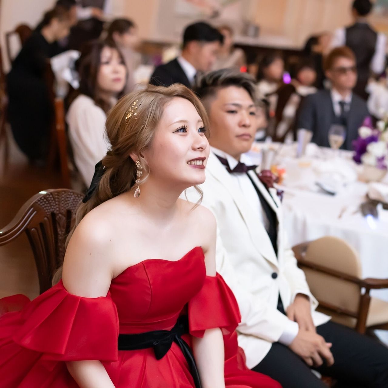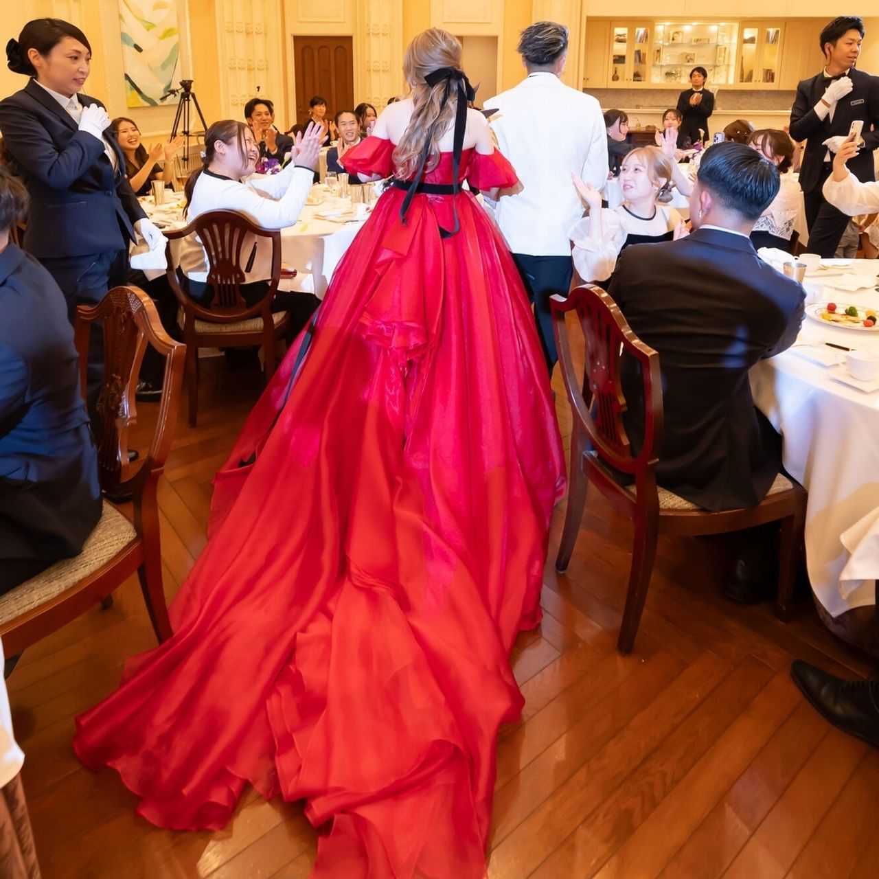 新郎には当日まで内緒で、私らしいカラーの真っ赤なドレスを選びました。