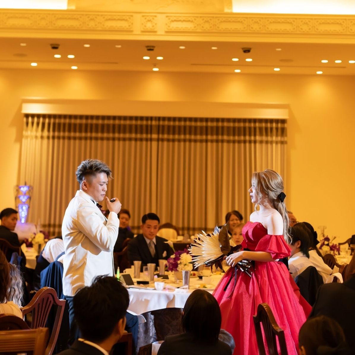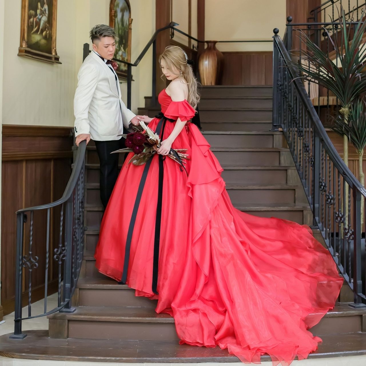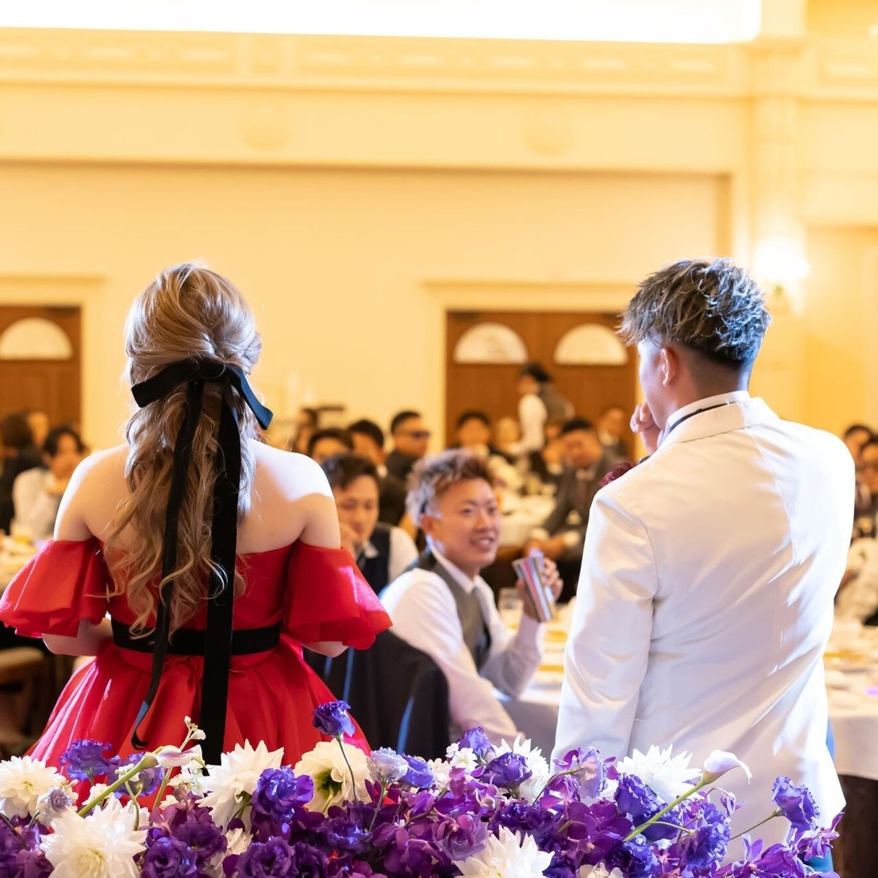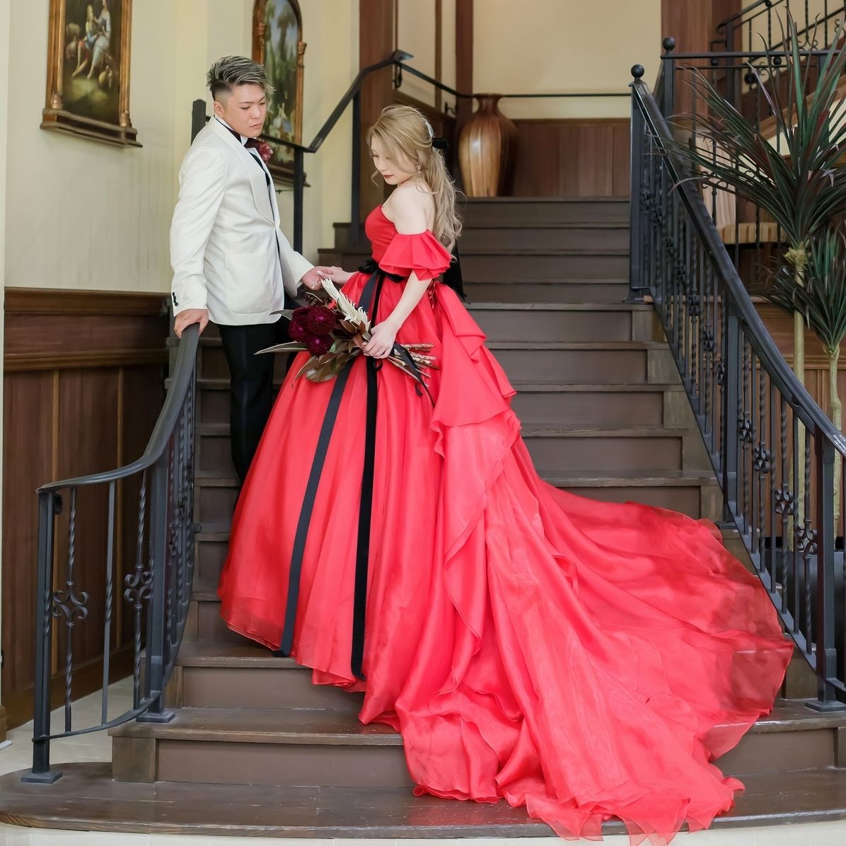 新郎には当日まで内緒で、私らしいカラーの真っ赤なドレスを選びました。