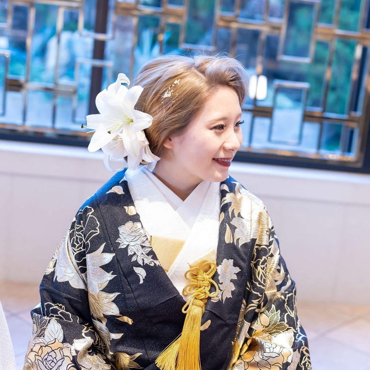 3つとも違う髪型にしたく、ウェディングドレスは巻き下ろし、和装は全てアップにして夜会巻き風な感じ、カクテルドレスはハーフアップで少し可愛めにしました!