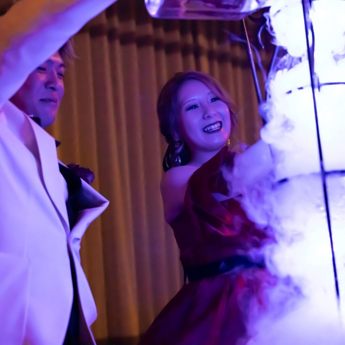 カクテルドレスの時にサイドから煙を出してLIVE会場風にしました!