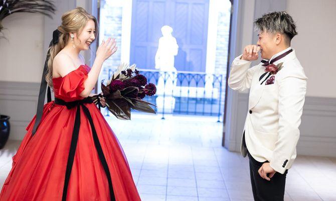 新郎からサプライズ薔薇12本