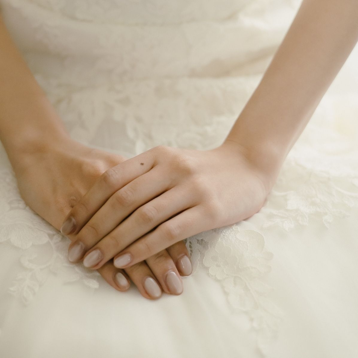ネイルは特にこだわりがなかったので、ドレスを邪魔しない薄めピンクのミラーネイルにしました。