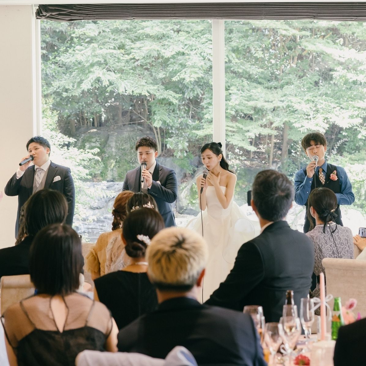 余興では夫婦共に歌を歌うのが好きなので当日はアカペラで友人と歌ったり、新郎にソロで歌ってもらったりしました♪