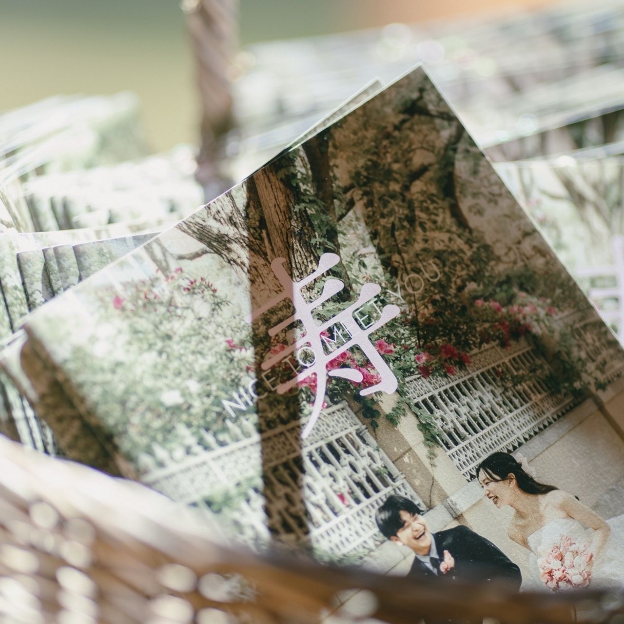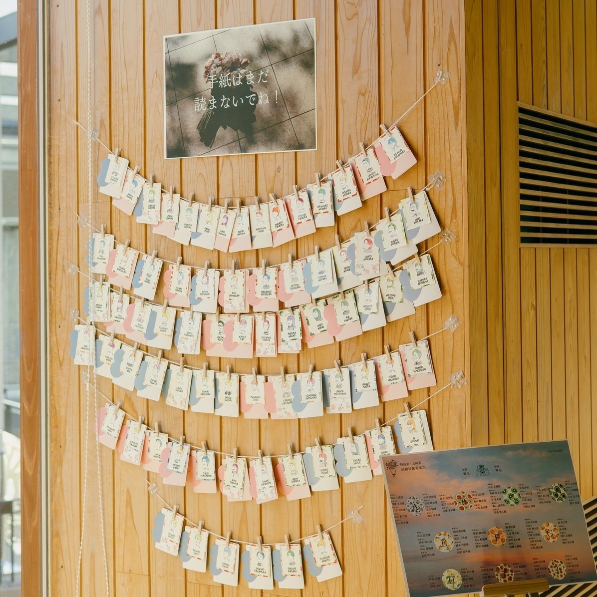 “出会えてよかった”という気持ちを表現するために、Nice to meet youをあえて直訳してテーマにしてみました。ゲスト全員への夫婦2人からの手紙や、夫手作りの似顔絵、ゲスト全員との写真の掲示や歓談の時間の確保などで感謝をなるべく伝えられるように意識しています。