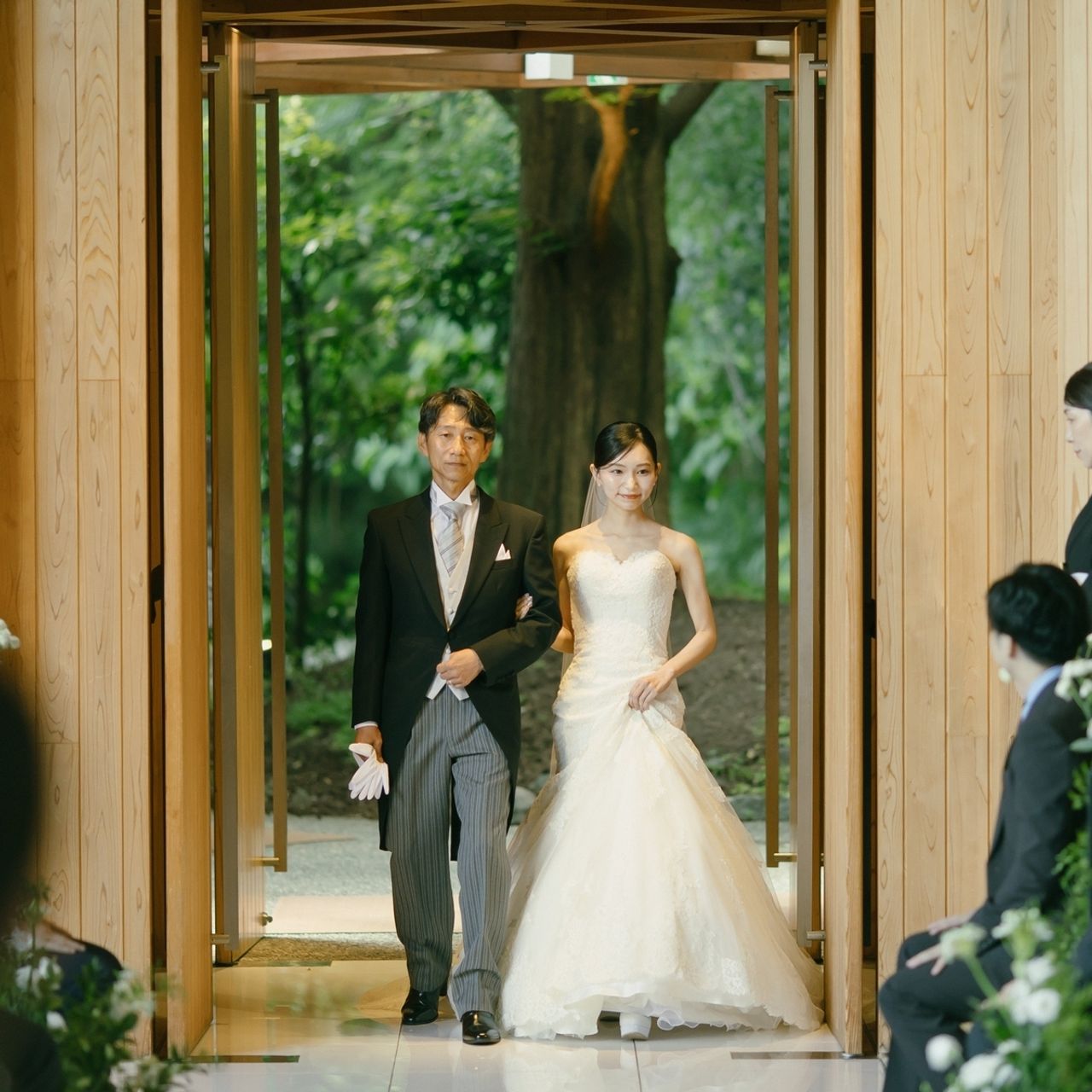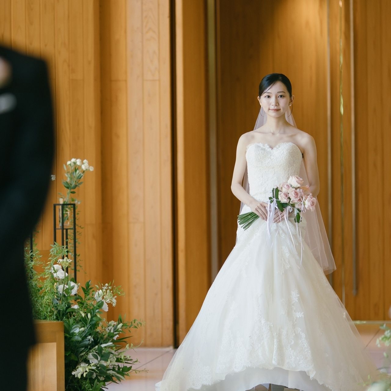 挙式のチャペルで扉が開いた瞬間が1番感動しました。幼少期から今に至るまでの時間軸の中で出会った大切なゲストが一堂に会している光景に感動しました。