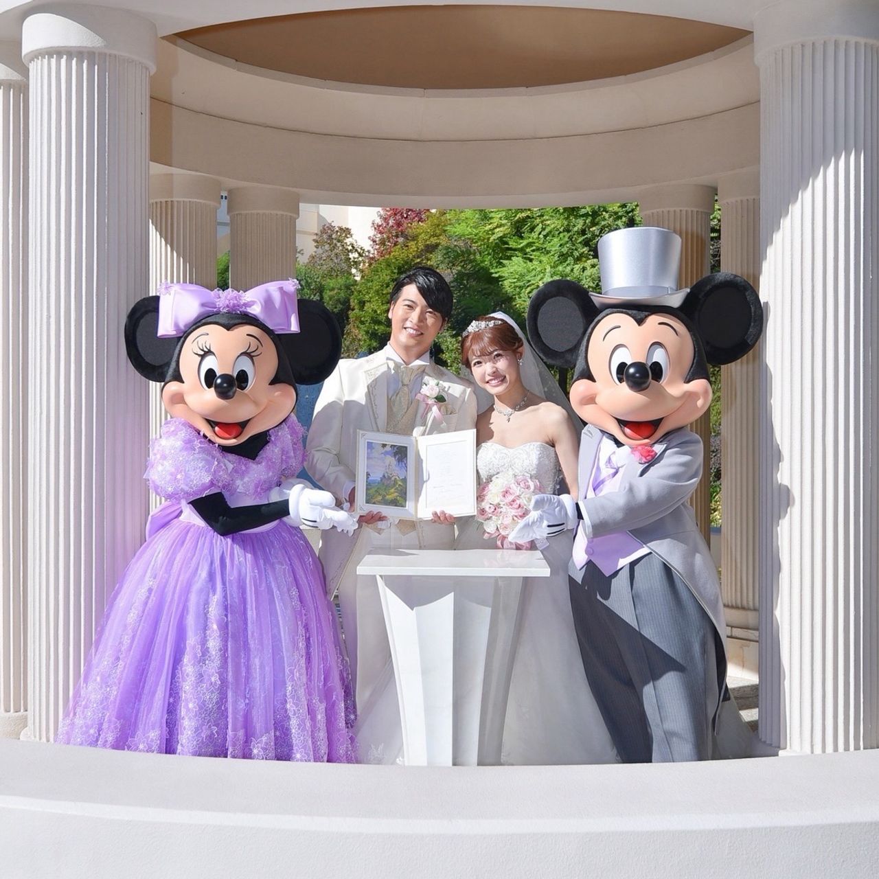 また、挙式後にミッキーとミニー (or ドナルドとデイジー) が駆けつけてくれて誓約書にサインをしてくれるサイニングセレモニーを行いました。おふたりにもお祝いしてもらって、ミッキー・ミニーと沢山お話したりお写真を撮ってもらえます。ミッキーとミニーを二人占めできる贅沢時間!キャラクターが大好きな方にはとってもおすすめです!
