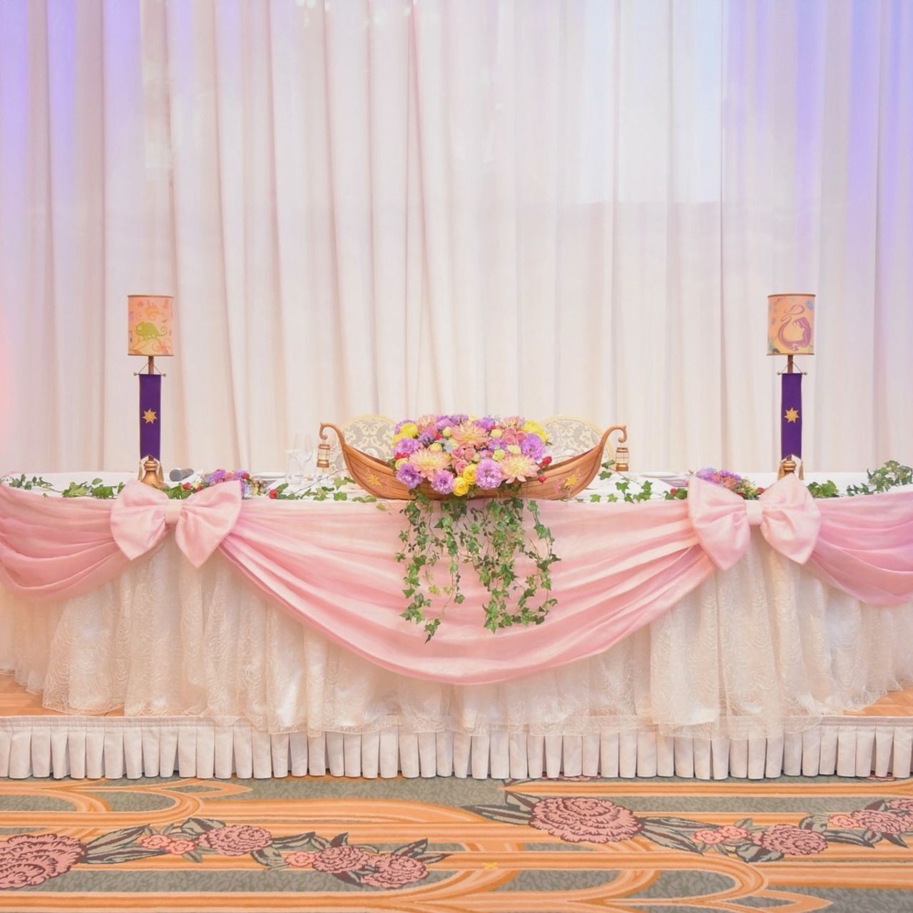 披露宴会場は、プリンセスたち(シンデレラ・美女と野獣・ラプンツェル) の特別演出付き装飾やキャラクターモチーフの装飾等を選ぶことができます。好きなキャラクターやプリンセスがいる方には夢のような空間になること間違いなしです!