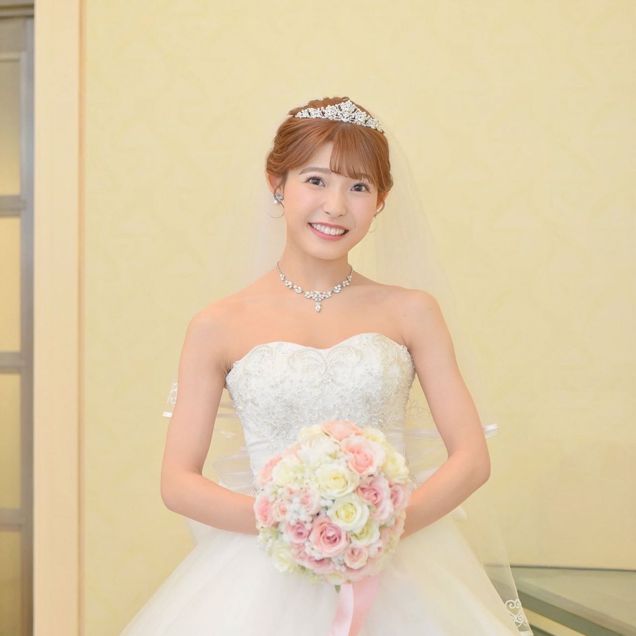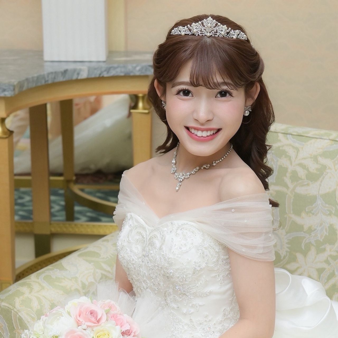 挙式ではANNAN WEDDINGティアラ "T02" を選びました。 高さが低めで山型になっているプリンセスティアラを探していたところ、パールも入ってて可愛いティアラに出会えました。