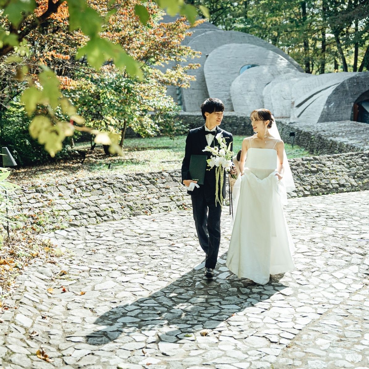 自然と調和した独特の空間で、石と光が織りなすあたたかみのある雰囲気に一目惚れしたのが決め手です。直線ではなくやわらかな曲線を描く造りや、差し込む自然光がとても幻想的で、他にはない特別感がありました。