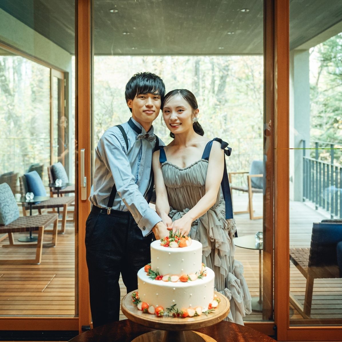 また、両家の出身地が離れていることもあり、お互いの家族が無理なく集まれるよう中間地点の星野リゾート 軽井沢ホテルブレストンコートを選びました。式の後もゆっくりと過ごしてもらいたいという思いから、そのまま滞在できる宿泊施設が併設されている式場を選んだのもポイントです。
