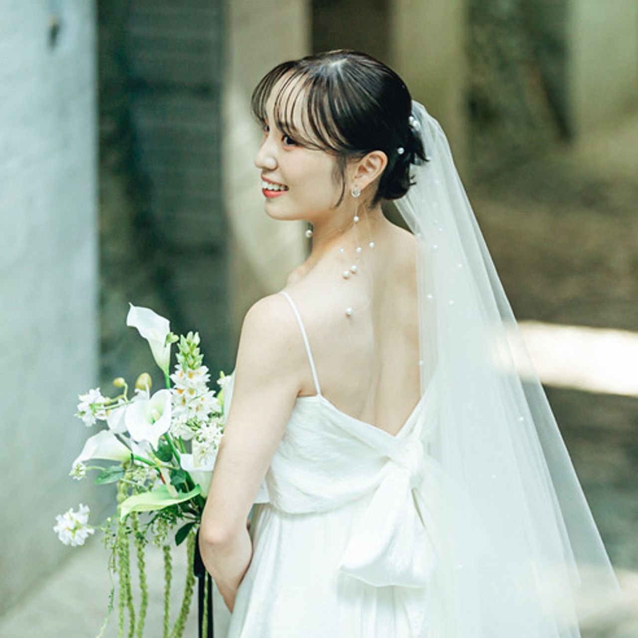 パールが顔まわりにふわっと浮かぶようなデザインがとても気に入っていて、シンプルなヘアスタイルとも相性が良く、上品な印象に仕上がりました。