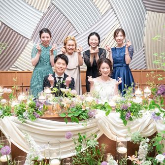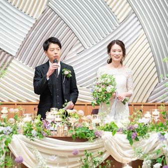 テーマは「初夏のナイトパーティー」です。初夏の瑞々しさやナイトウエディングの良さを表現できるよう装花にこだわりました。大好きなお花や2人の思い出のお花をふんだんに取り入れて、まるでそこに咲いているかのような空間を目指しました。