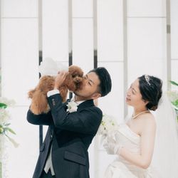 \ペットと一緒の結婚式を叶えよう/お支度~挙式・パーティ中もずっと一緒に過ごせて人気♪今なら愛犬専用コース料理や可愛いペット用フォトブースも無料になる特典付き★≪黒毛和牛コース3万円無料試食つき≫
