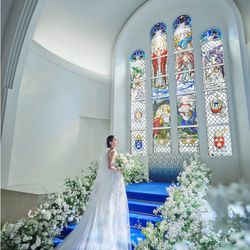 純白なドレスが映えるロイヤルブルーのバージンロードと140年前のステンドグラスが煌めく大聖堂で叶えるウエディング!お式のみプラン54.6万円~/フォトウエディングプラン16.5万円~各プランの相談&会場見学**