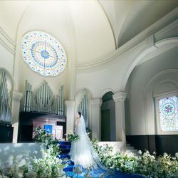純白なドレスが映えるロイヤルブルーのバージンロードとステンドグラスが煌めく大聖堂で叶えるウエディング!お式のみプラン349,800円~/フォトウエディングプラン165,000円~各プランの相談&会場見学**