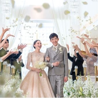 本番と同様の流れで モデルが入り挙式を行うイベントです。入場、賛美歌斉唱、指輪交換、誓いのキス、退場まで行うことが一般的で、所要時間は30分程度が多いです。ゲスト目線を体験できるのがメリットで、自分達の挙式のイメージを描くことができます。