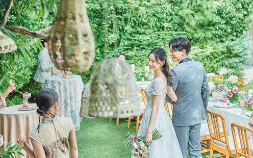 花嫁の憧れを詰め込んだ、 大人かわいい真っ白な空間。隣接のガーデンでゲストと温かな時間を
