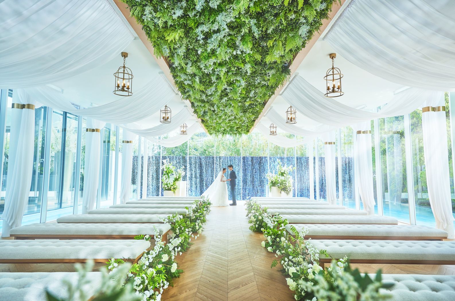 02.<ガラスのチャペル>水・緑・光に包まれた花嫁が美しく映えるチャペルで感動セレモニー
