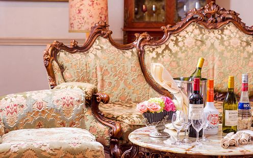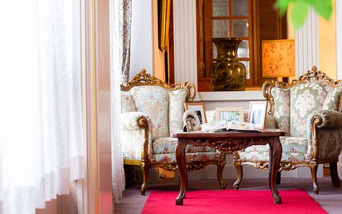 VIPのためだけに使用される豪奢な空間。重厚な家具、外国製の壺や陶器の人形などさまざまなアンティークが置かれた素敵な部屋は、本格的なハウスウエディングが実現します。