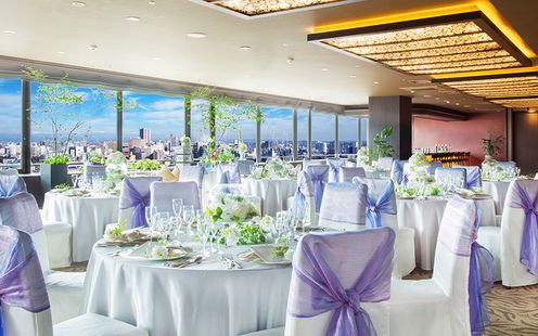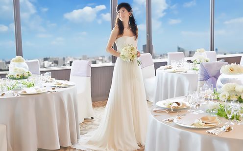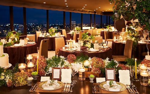 最上階に位置し、ここでしか味わうことのできない開放感あふれる景色はまさに絶景。昼は柔らかな陽光、夜は幻想的な街の灯りが、会場を華やかに演出してくれる会場です。ゲストとの距離を近く過ごせる会場だから大切なご家族ご友人とより密な時間をお過ごしいただけます。