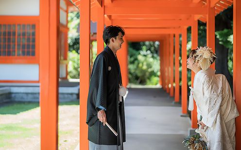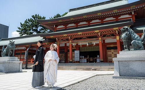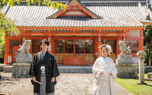 浜松の中心部に位置し、縁結び・安産・子育ての神社として多くの人々の崇敬を集める神社。朱色が美しい趣ある社殿で、ふたりの心に残る厳かな結婚式が叶います。