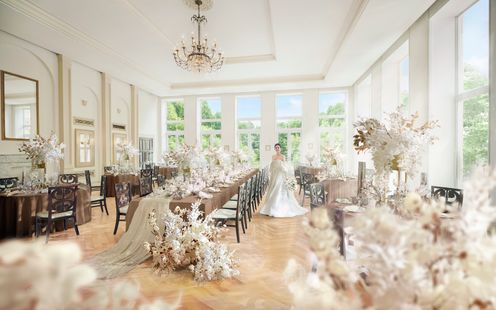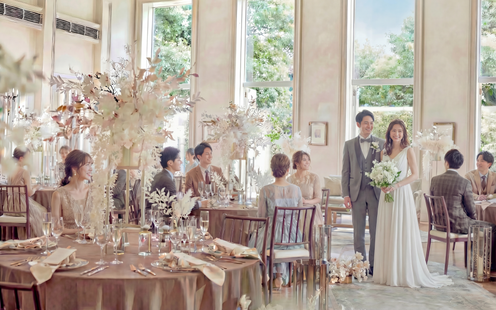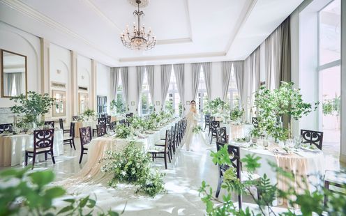 ウエルカムパーティからデザートビュッフェ、写真撮影などプールやガーデンを使った演出も人気なうえ、全天候型コンサバトリーもあるので天気の心配もいらず安心!テーブルレイアウトも円卓テーブルや、流しテーブルなどふたりの希望通りにアレンジOKです。また、完全貸切だからエントランスから会場、プールサイドまでふたりの世界観でトータルスタイリングをお愉しみいただけます。さらに10名~の家族だけの結婚式も貸切OKです!