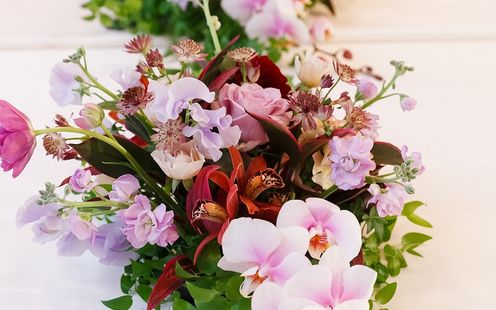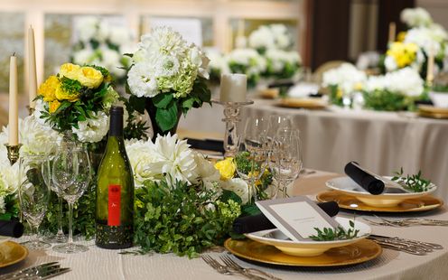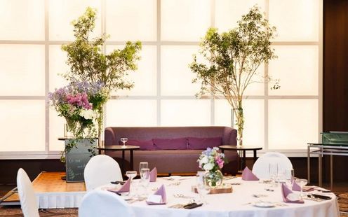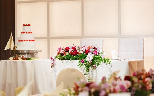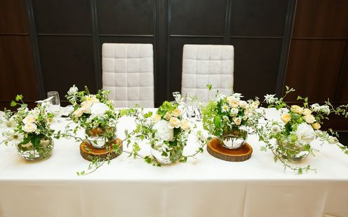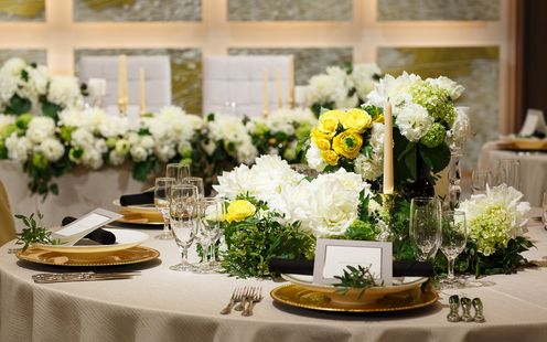 プロの手で、ふたりの想いをかたちにする空間づくり。装花が彩る、華やかで心地よい空間