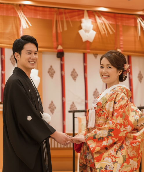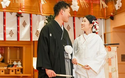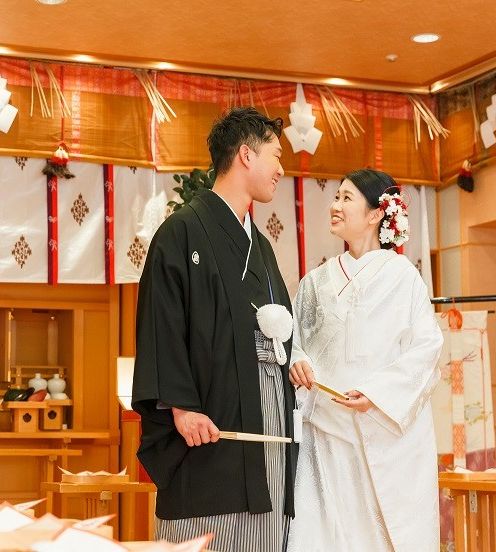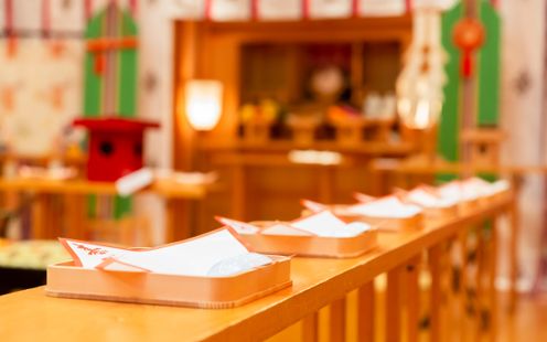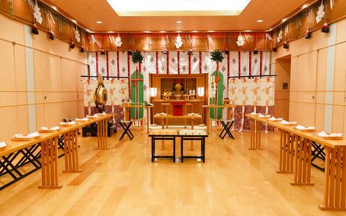 館内神殿では、「出雲大社」の神官による神前式を執り行うことができます。古式に則った厳かな儀式が、夫婦となる誓いの瞬間を深く心に刻みます。館内神殿以外に、島根県を代表する「出雲大社北島国造館」や「八重垣神社」など、4つの由緒ある神社での挙式も可能です。