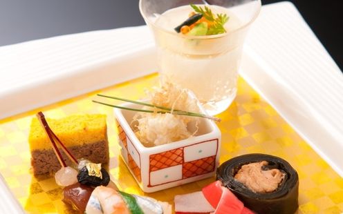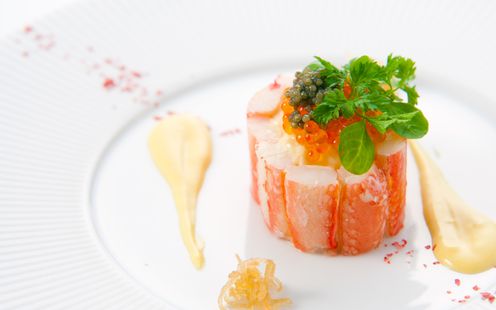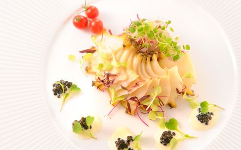 3つのスタイルから選べる婚礼料理は、おもてなしを大切にしたいふたりの想いに寄り添う、柔軟なコース構成が魅力です。「セレクトコース」では、和食・洋食・和洋折衷から、ゲストが事前に好みのコースを選択可能。年齢や好みに配慮できると人気を集めています。「オーダーコース」は、思い出の食材やエピソードを取り入れた特別な一皿で、感謝の気持ちを形に。豊富なアラカルトから自由に組み立てる「プリフィクスコース」は、味わいはもちろん、見た目にも美しい料理で、心に残るおもてなしが叶います。