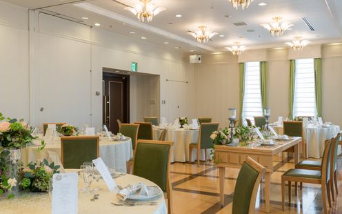 宿泊施設を完備しており、遠方からのゲストがいる場合も安心です。新郎新婦はスイートルームでの宿泊も可能で、結婚式という特別な一日を、贅沢な余韻とともに楽しめます。