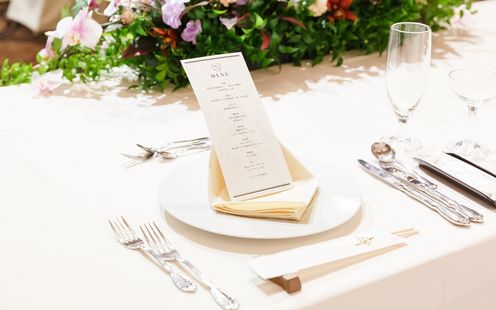 経験豊富なプロがふたりのイメージに寄り添い、色味や花材まで丁寧にコーディネート。テーブルや会場全体に広がる花々が、ゲストをあたたかく迎え、おもてなしの気持ちを伝えます。イメージが固まっていない場合も、好みや雰囲気をもとに最適なコーディネートを提案してくれるので安心です。
