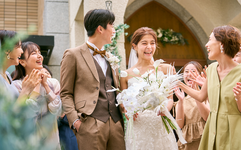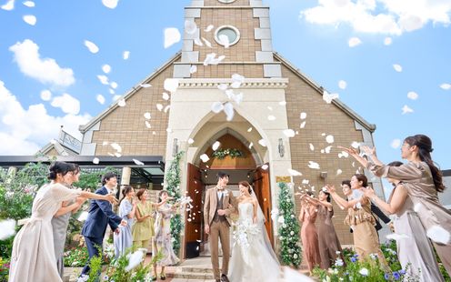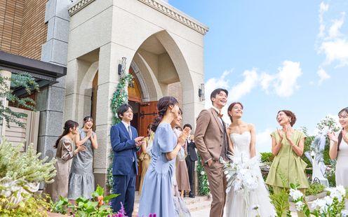 まぶしい日の光が降り注ぐフェアリーガーデンでは、四季折々のお花がお楽しみ頂けます。青空とチャペルをバックに、ご友人様と和やかなお写真撮影タイムを!挙式後のアフターセレモニーをゆっくりご堪能ください。