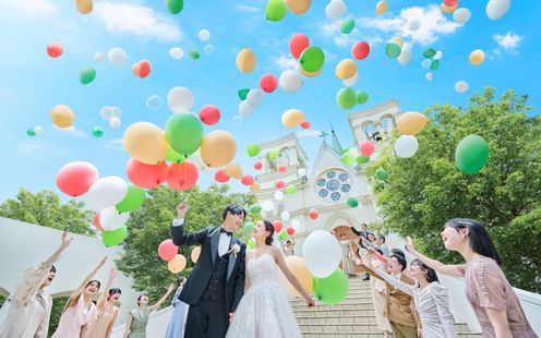 【可能な演出】フラワーシャワー/バルーンリリース/ブーケトス/パイプオルガン/聖歌隊・ゴスペル演出/大階段にてゲスト全員での集合写真撮影
